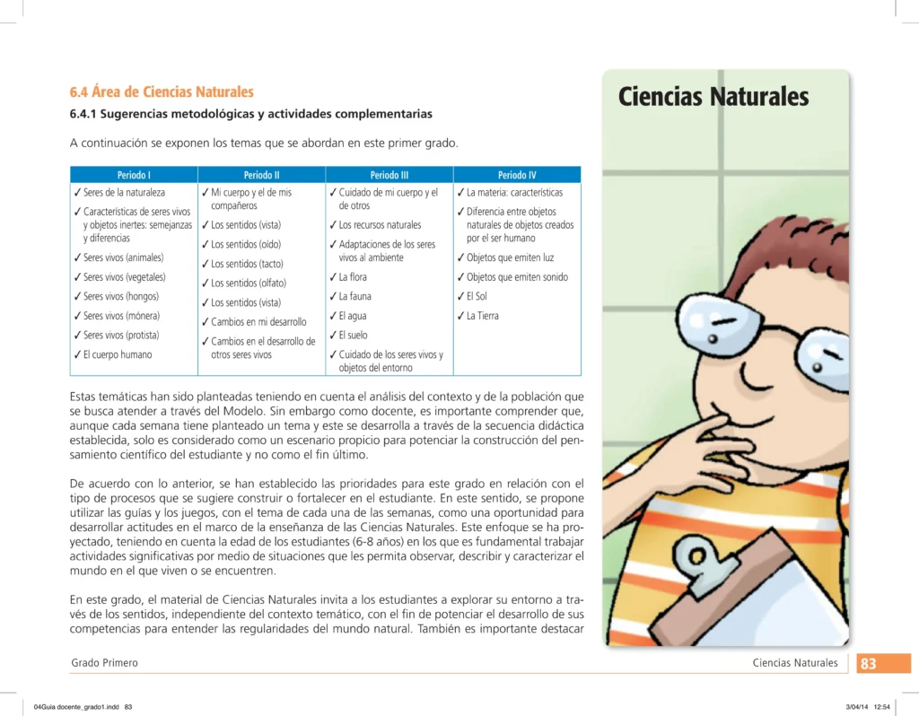 La Guía docente Ciencias Naturales Grado 1ro es un pilar esencial para fortalecer el rol del docente como agente de cambio ético y político en la educación. Este recurso promueve la autonomía y el codiseño curricular, impulsando el pensamiento crítico. Además, ofrece un enfoque metodológico y conceptual que enriquece la práctica educativa y fortalece el vínculo escuela-comunidad, en sintonía con el Ministerio de Educación de Colombia.