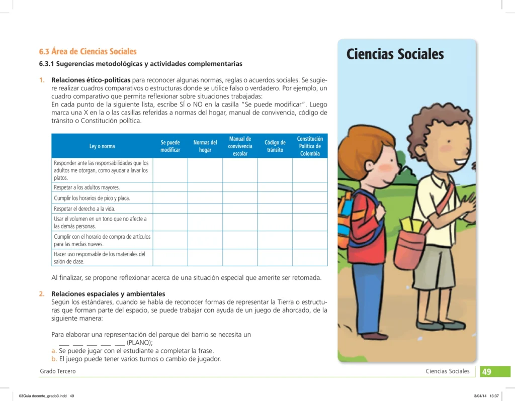 La Guía docente Ciencias Sociales grado 3ro actividades metodológicas se erige como un faro para quienes ven en la educación una herramienta de transformación social. Empodera al docente como sujeto político y ético, fomentando la autonomía y el codiseño curricular. Este recurso metodológico y conceptual enriquece la práctica educativa y fortalece el vínculo escuela-comunidad, alineándose con los lineamientos del Ministerio de Educación de Colombia.