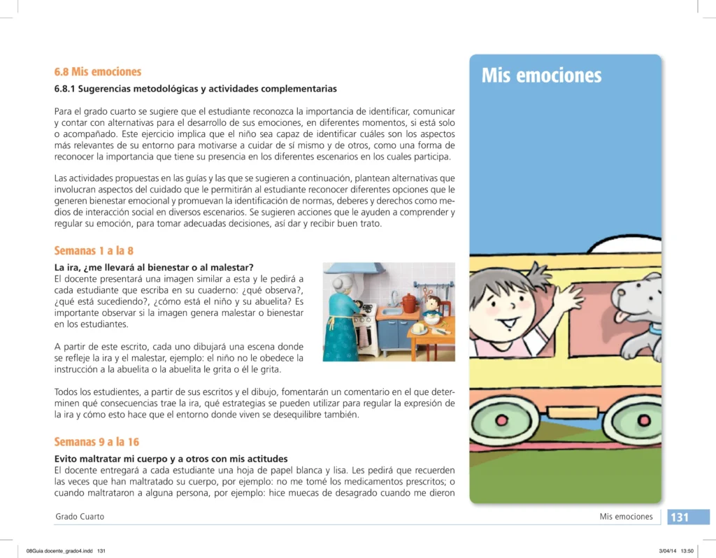 La Guía docente grado cuarto emociones y actividades complementarias se erige como un faro de inspiración para los educadores, fortaleciendo su rol como agentes de cambio político y ético en el aula. Este recurso fomenta la autonomía docente y el codiseño curricular, promoviendo un pensamiento crítico. Con un enfoque metodológico y conceptual, enriquece la práctica educativa y fortalece el vínculo escuela-comunidad, en alineación con el Ministerio de Educación de Colombia.