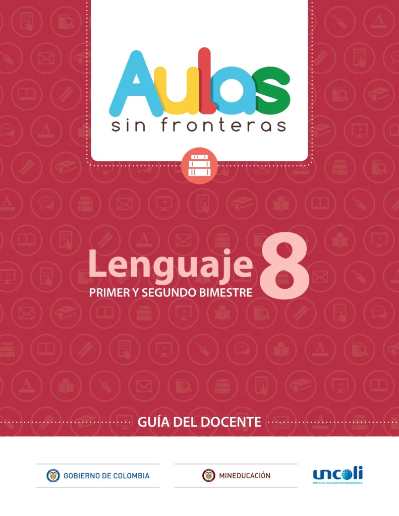 La Guía del Docente Lenguaje 8: Bimestres 1 y 2 es un material pedagógico elaborado dentro de la estrategia Aulas Sin Fronteras del Ministerio de Educación Nacional de Colombia, diseñado para acompañar a los docentes en la planificación y ejecución de las clases de Lenguaje para octavo grado durante los dos primeros bimestres.