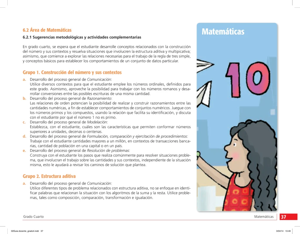 Matemáticas: Guía Docente - Grado Cuarto - Sugerencias Metodológicas (MEN) PDF